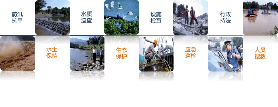 全巡检中:远程操控、指令下达、自主飞行、智能巡检、实时分析、高清回传、数据共享